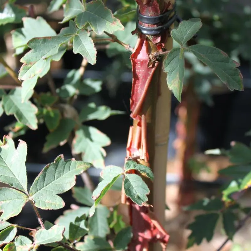 Flerstammet busk/træ,5-8 m højt, 2-4 m bredt. Dekorativ afskallende bark. Flotte høstfarver. Sol til halvskygge. Mudrig, veldrænet jord.