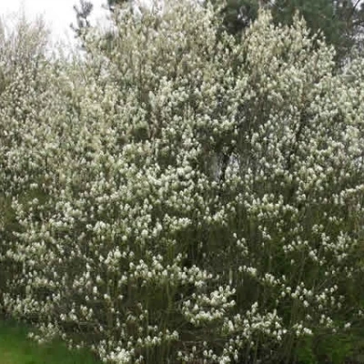 Aks-bærmispel. Tæt, opretvoksende busk. 3-4 m. høj. Hvide blomster i april. Blåduggede bær i juli. Trives i sol og skygge. Velegnet til sandet jordbund. – Salgshøjde: 50-80 cm.