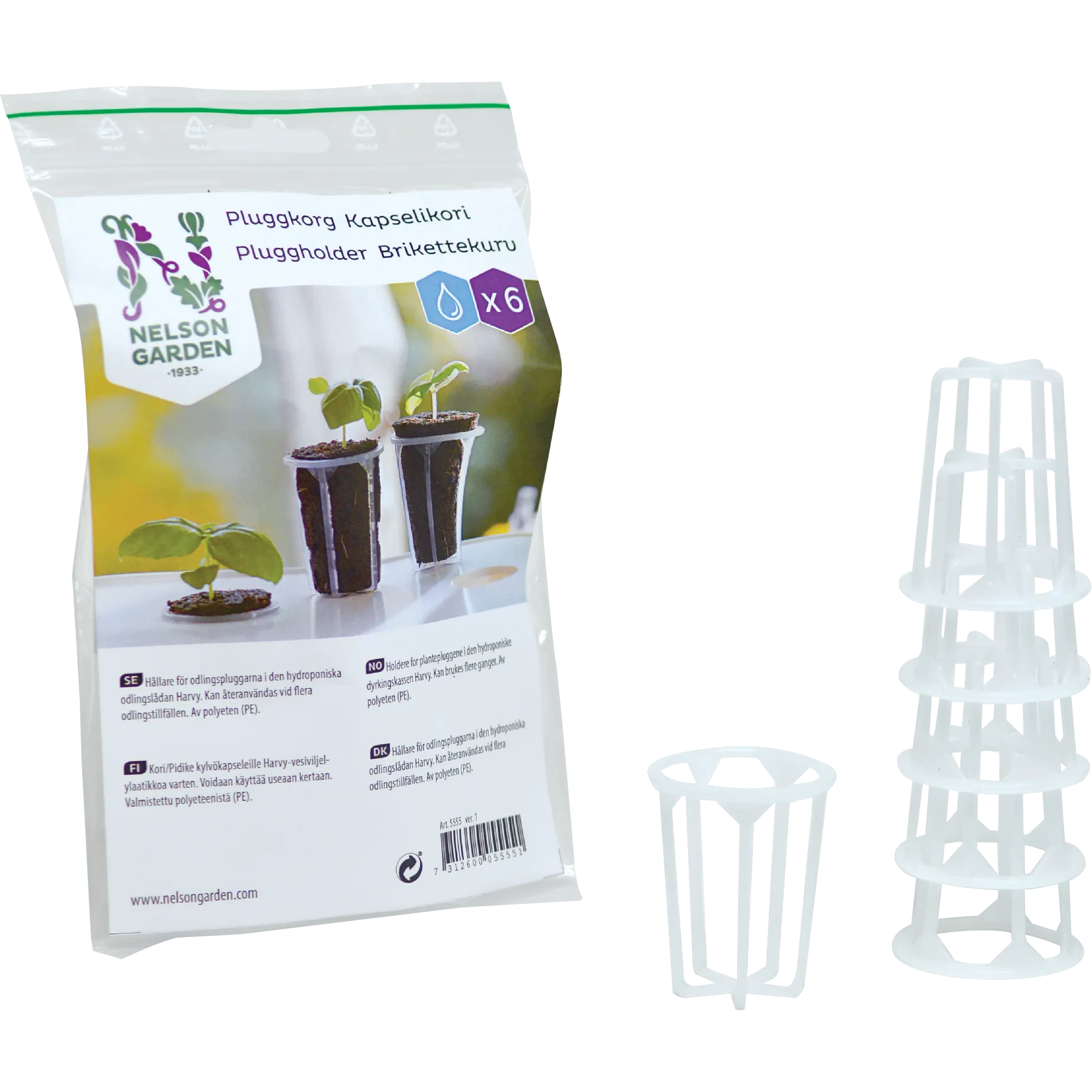 Refill-produkt til den hydroponiske dyrkningskasse Harvy. Brikettekurvene anvendes som holdere til dyrkningsbriketterne. Kan genbruges til flere dyrkninger. Af polyeten (PE).