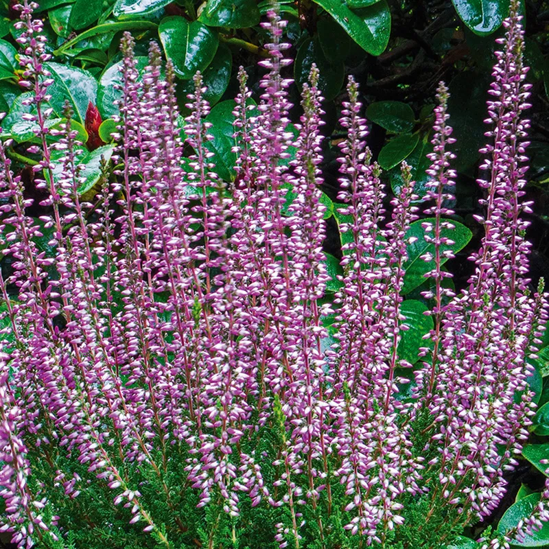 Knopblomstrende lyng med violette knopper i september-november. Kompakt vækst. Plantes i fuld sol i veldrænet sur jord. Klippes tilbage efter blomstring.