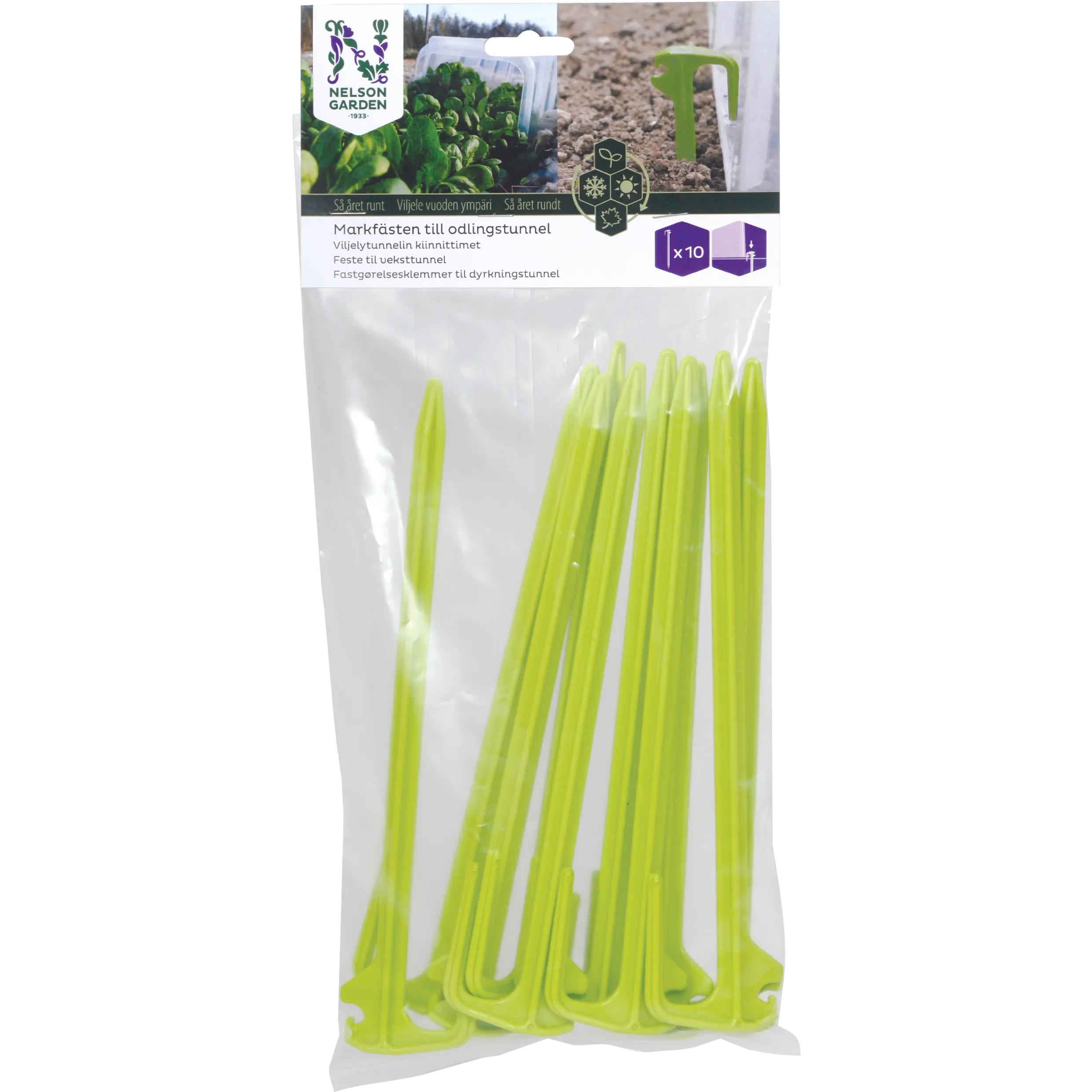 Tilbehør til dyrkningstunnel med dobbelte funktioner. Fæstner tunnelen mod jorden og bruges som støtte ved ventilering.