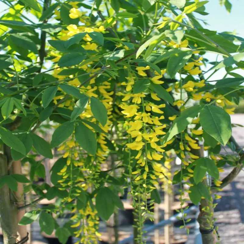 Opret træ 5-6 m høj og 3-4 m bred, olivenfarvet bark. Er rigtblomstrende, guldgule blomster i lange klaser. Placering i sol – halvskygge i alm. havejord. Velegnet som solitær og i grupper.