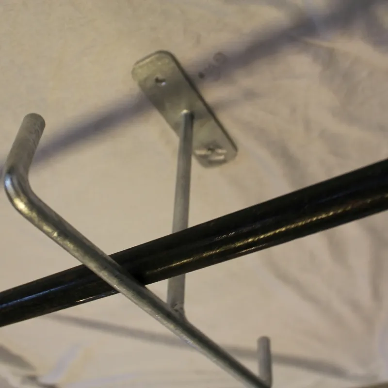Loftophæng med ankerform, Den “åbne form” gør det let at ligge feks. flagstangen ind. – Velegnet til loftmontering i garagen til opbevaring af diverse lange ting. – rør, bræder, ski, flagstang mm.