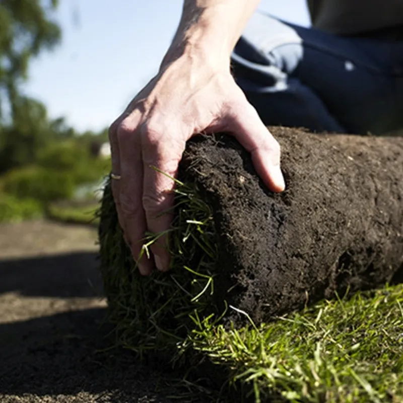 Vores rullegræs er dyrket i Danmark. Når det har vokset sig smukt og stærkt, skærer vi det op i ruller, lægger det på paller og kører det hjem til dig.