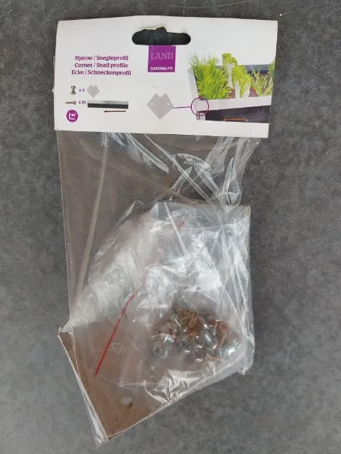 4 stk. hjørner i pose incl. skruer.