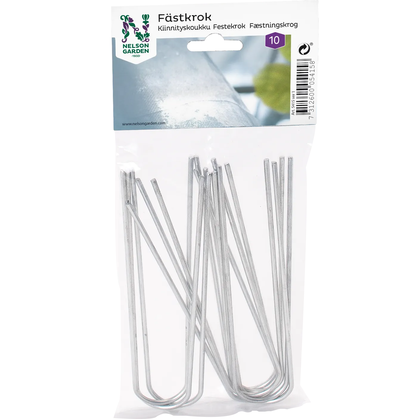 Holder til forskellige typer af dug og væv. Stikkes igennem materialet og ned i jorden. Galvaniseret metaltråd.
